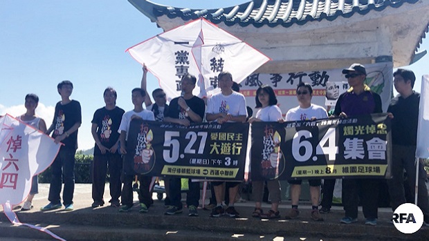 ▲自由亚洲电台(RFA)粤语部5月20日报道:民主风筝悼“六四”对抗威权要“同心”