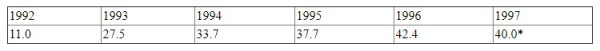 说明: *,预计数;资料来源为路透社1997年8月5日电讯。
