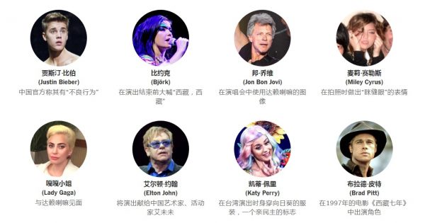 一些演员、音乐家和其他名人由于被认为有不适当的或批评中共的行为,被禁止进入中国。