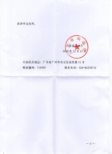 (维权网信息中心报道)2018年12月25日,本网获悉:广东著名人权刘正清律师今天接到广东省司法厅《行政处罚听证通知书》和《行政处罚预先告知书》。