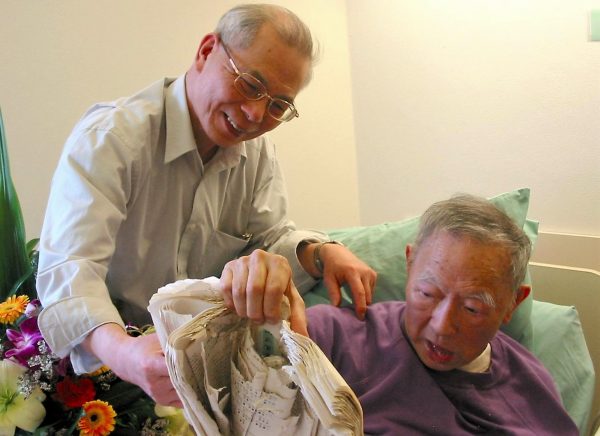 已经垂垂老矣又经中风打击的梁羽生又回到自己的平生至爱——他在病榻上每天背读诗词,把一本本诗词书籍都翻破了(摄于2008年9月20日,本文作者到颐养院探望)。