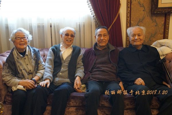 、李锐夫人张玉珍(左一)于2018年1月与好友鲍彤(右二)、杜导正聚会-600x401.jpg)