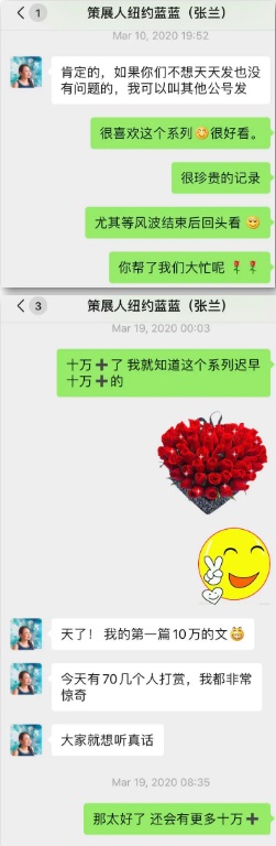 生活要继续,她最希望的就是不要让谣言占据了真相的空间。我们要把兰兰姐生前的理想,继续下去。。。就像兰兰姐的密友说的,“因为大家现在都在看疫情中的纽约,兰兰姐的朋友遍布全美各地,我可以写写我们这的,其他朋友也可以写写其他州的情况,纽约那边有朋友也可以继续写,用这种方式来纪念和纪实,也是很有意义的事情。”