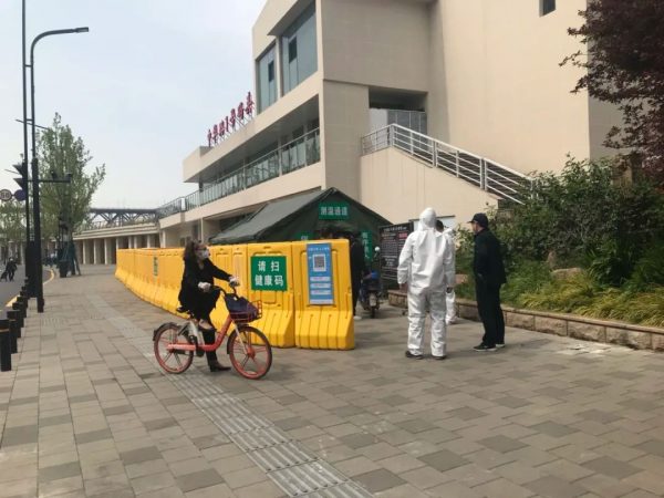 我不想接受进一步监控,还在和实名乘车做抵抗,拒绝坐公交和地铁。我的出门时间依然是两个小时。我沿着临江大道骑车,路过中华路7号码头,入口被黄色水马围栏围了起来。上面贴着”温馨提示”:“请扫健康码”,旁边贴着一个二维码,写着“行程上报,人人有责”。乘客扫码后还要进入一个测温通道。