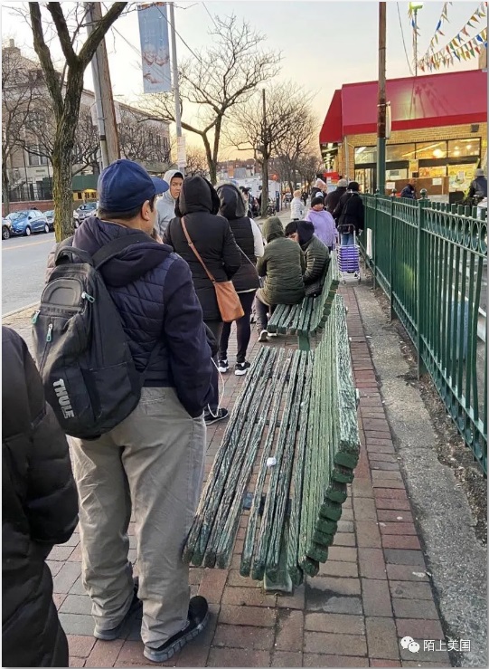 可是,疫情之下买菜还真不是一件容易的事儿。因为限制进店人数,还得保持安全距离,每次排队等进门就是一两个小时。荣大哥喜欢去法拉盛的大中华超市,在那里经常会碰见他的广东老乡。以前买完菜,他总是和老乡一起去吃个早茶,聊聊天。疫情发生后,老乡见老乡,也只是远远点个头,匆匆别过。华人谨慎,感染新冠的比例较其他族裔小。法拉盛的超市每天都进行消毒,营业员和顾客也都戴口罩,给人感觉很安全。