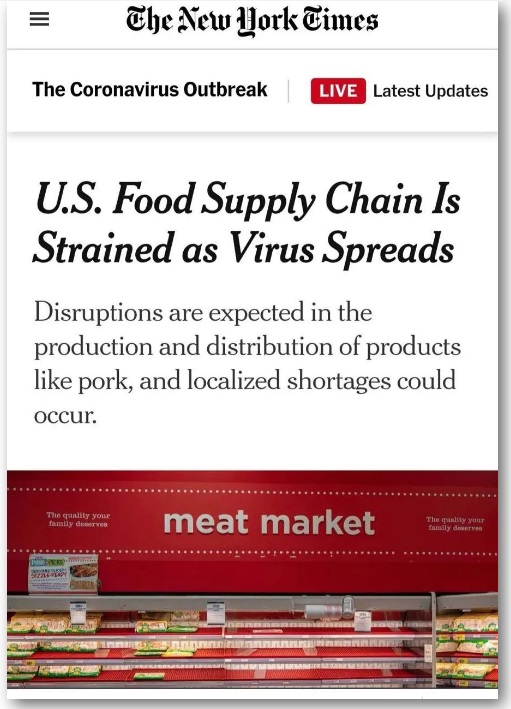 另据《华尔街日报》报道,美国主要肉类和家禽加工商,包括Tyson Foods Inc和Cargill Inc等公司,日前也因员工感染新冠病毒而临时停止部分工厂的运营。这意味着美国猪肉或将面临短缺,肉类食品会涨价!