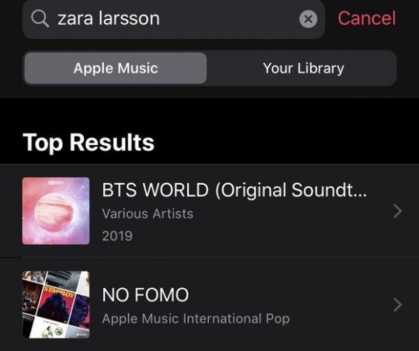 瑞典歌坛天后拉尔森上周二(4日)宣布已终止与华为签订的代言人合约,她批评中国打压香港和新疆人权,并指中国政府不是「友善的政府」,其后苹果音乐(Apple Music)中国区已下架其歌曲。当订户在搜寻栏目输入拉尔森的关键词后,中国区苹果音乐即显示没有搜索结果。