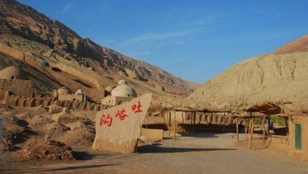吐峪沟在火焰山最高峰脚下,藏在火焰山褶皱之间。之所以有名,在于吐峪沟是中国境内伊斯兰教第一圣地,被称为“小麦加”。传说穆罕默德创立伊斯兰教后,他的五名亲传弟子向东传教。走到这里,有位带狗的牧羊人成为第一个信仰者。五人便和牧羊人长住此地,传播伊斯兰教。他们去世后都埋在这里,现存六座土坟和一个形似狗的石头,被称为七圣贤墓。维吾尔人把伊斯兰圣贤的陵墓叫做麻扎(据说是阿拉伯语音译)。这是我第三次来吐峪沟。一九八○年那次既看不到管理者,也看不到朝拜者,感觉最好;一九九九年也比这次感觉好。现在已经成为旅游点,进去要买门票。里面圣人墓的洞穴,按穆斯林的规矩必须净身才能进入,现在被当地一个阿訇承包,给钱随便进。