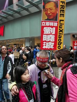 刘晓波是独立中文笔会的创会会员,在2003到2007年间他曾担任独立中文笔会会长。今次游行中独立中文笔会的队伍格外醒目,受到民众和记者的特别关注。不时有市民在独立中文笔会队伍的游行横幅前停下脚步,摄影留念。除独立中文笔会外,汇入3万民众游行洪流的香港作家、记者同行的团体还有香港中国笔会和香港记者协会等。此次大游行也有从广州、深圳等地专程赶来的内地民众参加,他们向现场记者表示是趁元旦新年假期特来香港观摩民主、学习民主、实践民主。