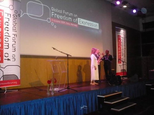 “言论自由全球论坛”由挪威言论自由基金会、挪威笔会和国际言论交流自由(IFEX)共同主办,挪威外交大臣斯特勒致开幕辞。斯特勒大臣的开幕辞以只身阻挡坦克的“坦克人”——“王维林”的镜头谈起,开门见山地强调这个作为20年前今天的“六四事件”象征的镜头,以其无言的表达体现了言论自由的强烈意义——“这张照片不曾改变世界,或者它改变了?它形成了一个世界观并继续如此。我们将一辈子记得它。”