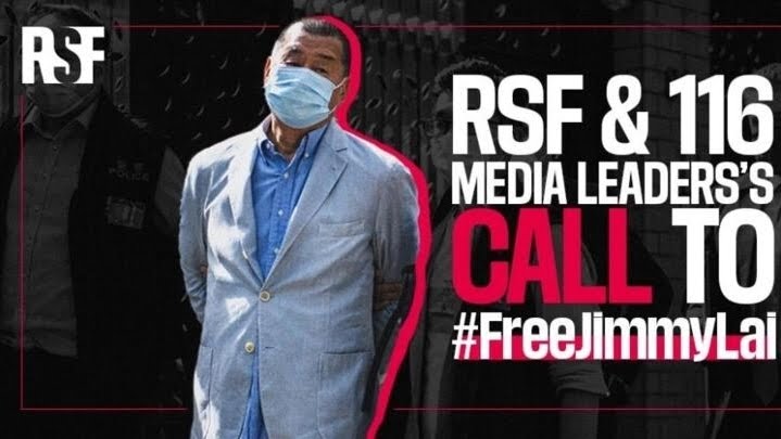 全球42个国家的116名传媒话事人联署,要求港府立即释放被囚的壹传媒创办人黎智英及其余13名被当局以《港区国安法》及煽动罪羁押的新闻工作者,并同时撤销针对28名新闻工作者的相关控罪。港府不点名地对联署表示“强烈反对及严厉谴责”,指他们假借新闻自由之名,干涉香港的司法程序,有辱法治。发起联署的“无国界记者”组织的发言人艾玮昂(Cédric Alviani)认为,港府不得不回应已是联署的胜利,而香港排名近年急遽下滑已足证港府的否认是谎言。