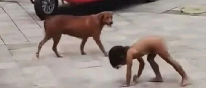 而且,孩子确实也已经出现了“犬化”的特征了。