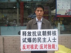 图片:网民郭春平在地铁站抗议广东拘押反朝鲜核爆人士的照片 (郭飞雄提供)