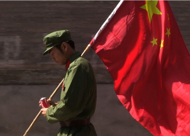 然而有一个细节,也许让杜海滨窥见了小赵日后可能存在的变化。雄赳赳气昂昂地走在古城墙下的小赵,突然从绿军装下面取出了一罐可口可乐,而且他还很有自知之明地对着镜头自嘲说:这罐可乐可不能出现在一会的游行中,那是资本主义的东西。这时观众是否也像我一样,惊异于小赵的自觉,我想起了我日常在网络上常常遇到的五毛党,他们不一定都像小赵这么聪明。聪明意味着会反思、会质疑,这两点恰恰是洗脑者最忌讳的。
