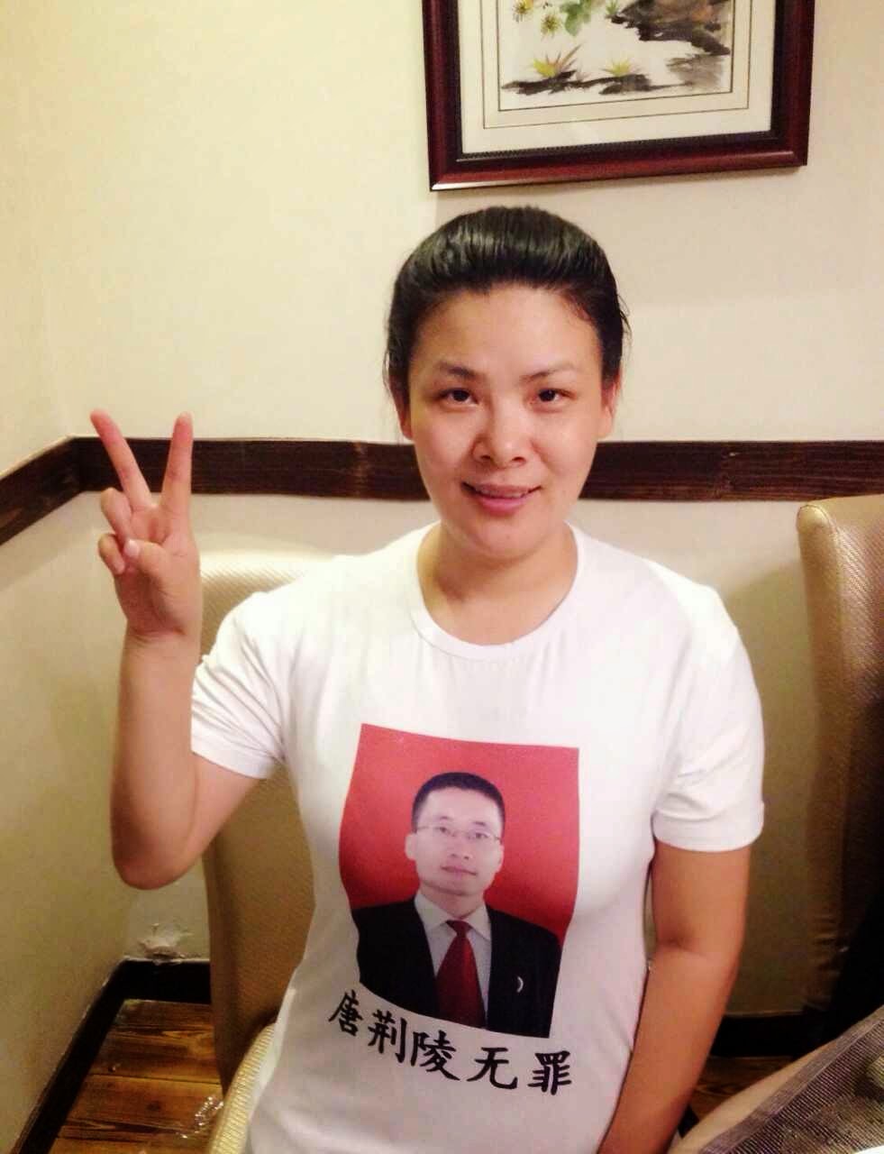 近日,北京一些律师公民开展穿唐荆陵律师头像T恤衫的活动来声援唐荆陵。包括维权律师唐吉田、童朝平、余文生,以及人权捍卫者向莉等多人参与了声援活动,而活动人多而印有唐荆陵头像的T恤衫显得太少了,很多人为没有穿上这白衫声援唐荆陵深表遗憾。但大家表示为了我们的权利、为了我们的选票、为了我们共同目标,我们抗争到底。