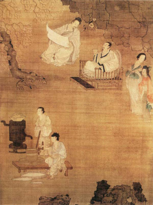 南朝的文人率先加入了这场关于牛郎织女的历史性合唱。在梁殷芸的《小说》里,作者宣称天河东岸的织女,是天帝的女儿,一年到头忙于编织云锦和天衣,弄得衣冠不整,容颜憔悴。天帝怜惜她还是单身,准许她嫁给河西的牵牛郎。这虽是一件好事,不料天国的纺织业就此遭到了沉重打击。天帝为此非常后悔,下令织女返回河东,只允许他们每年相会一次而已。这篇小说奠定了传说的叙事构架。