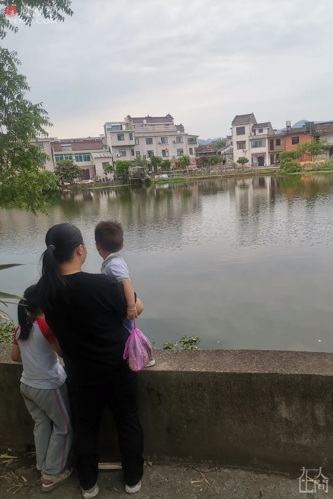 ■ 任雪萍和孩子在东阳泉塘村村口。