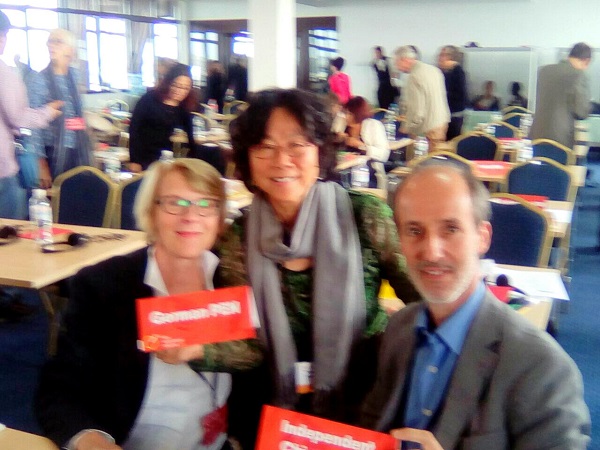 国际笔会这几天会议议程,安排介绍了诺贝尔和平奖获得者、中国“零八宪章”起草人之一、不久前病逝于狱中的刘晓波先生专题介绍和追思会,廖天琪会长报道了8月底在瑞典马尔默举行的“寻求共识空间——沒有敌人,也沒有仇恨 ”研讨会情况,強调该会议是纪念晓波为主题的,同是诺贝尔和平奖得主Shirin Ebadi,伊朗女律师出席会议,会议授予她刘晓波纪念奖一一一樽刘晓波的金色塑像。