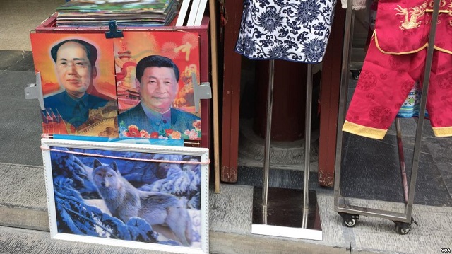 中国街头出售的面孔可以变换的毛泽东和习近平像