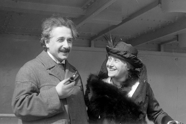 爱因斯坦夫妇资料图片。1921年,也就是爱因斯坦启程前往远东…