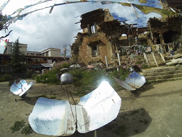 拉萨老城毁于文革的寺院废墟(喜德林寺废墟)前的太阳灶,如今已…