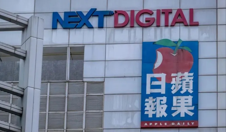 2021年4月20日,香港《苹果日报》大楼全景。图像来源:G…