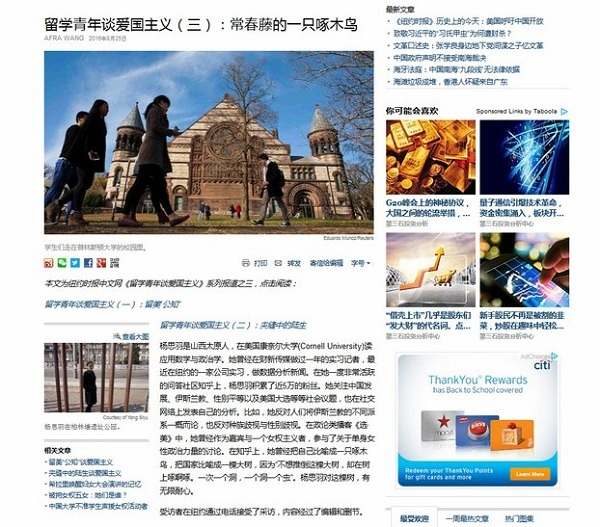 2016-09-02 最近,美国纽约时报中文网发表了留学青年…