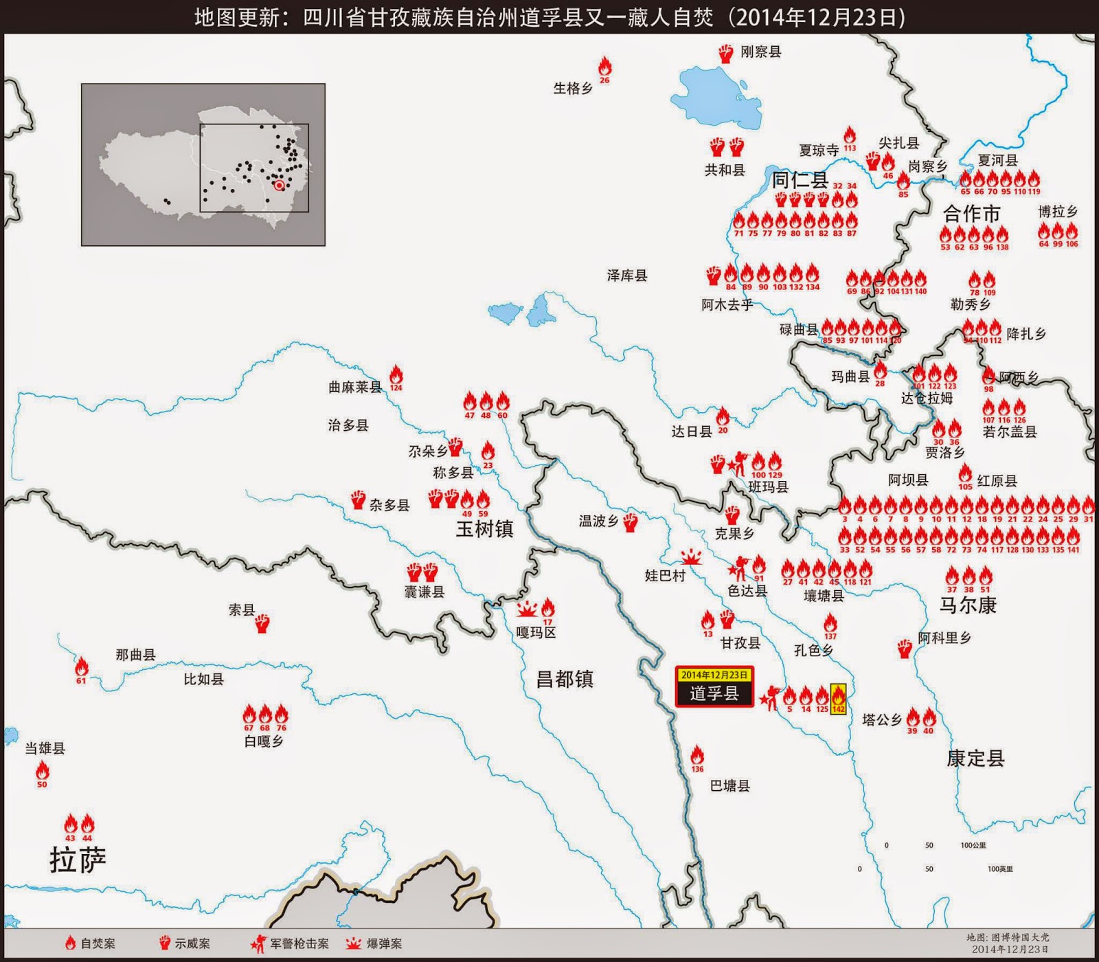 12月23日自焚抗议的阿坝县自焚藏人贡贝及其自焚现场.(转自…